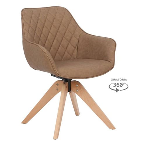 Procurando uma cadeira que lhe traga sofisticação, beleza, modernidade e conforto? A Cadeira Cíntia Base Giratória trás o combro disso e muito mais! Tendo sua base em madeira e estrutura revestida em PU vintage, ela se encaixará perfeitamente em qualquer ambiente em que for posta.