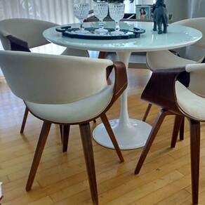 A cadeira Nicole possui um design diferenciado e pode ser usada tanto em salas de jantar ou como poltrona de aproximação em um quarto, sala, consultório ou escritórios. É uma cadeira com madeira multilaminada e muito requintada. Possui variações de acabamentos com PU (couro ecológico) ou linho. Acabamento da Estrutura: Não se Aplica Almofada do assento: Fixa Altura do assento até o chão: 50 cm Apoio para Braços Estofado: Não Complexidade da Montagem: Baixa: pode ser montado por uma pessoa sozinha Cor: Creme Cor do Produto: Creme Dobrável: Não Enchimento do Assento: Espuma D-24 Enchimento do Encosto: Espuma D-24 Escala de Brilho: Fosco Estrutura do Assento: Madeira e Linho Estrutura do Encosto: Madeira e Linho Giratória: Não Itens Inclusos: 1 Cadeira, Kit Ferragens e Manual de Montagem. Linha ou Coleção: Nicole Material da Base: Madeira Necessita Montagem: Sim Peso: 6 kg Possui Apoio Para os Pés: Não Possui Rodízio: Não Recomendações de Uso, Manutenção e Limpeza: Deve ser evitada exposição prolongada ao sol dos produtos, pois podem apresentar pequenas mudanças em sua coloração. Não é recomendado atritos brutos e o uso de abrasivos para limpeza, bem como álcool, removedores, limpa vidros, entre outros. Recomendado para uso interno. Revestimento do Assento: Linho Revestimento do Encosto: Linho Sistema de Montagem: Kit de parafusos Suporta Até (kg): 120 kg Tipo de Assento: Fixo Tipo de Encosto: Fixo Tipo de Madeira Maciça: Betula