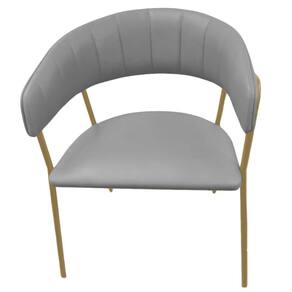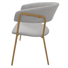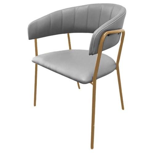 Cadeira com Braços Maraú PSG Móveis Couro autêntico Bege com Base em Aço Dourado