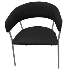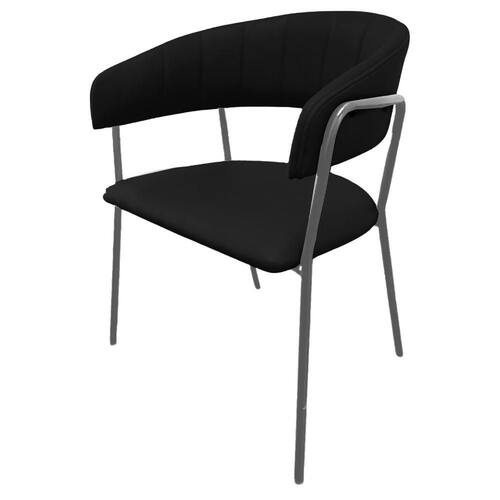 Cadeira com Braços Maraú PSG Móveis Couro autêntico Preto com Base em Aço Prata