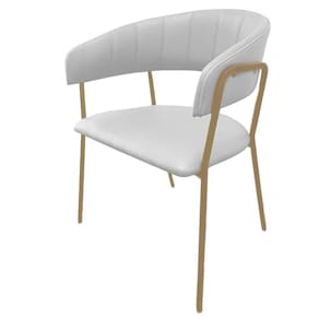 Cadeira com Braços Maraú PSG Móveis Estofada Courissimo Branco com Base Aço Dourado