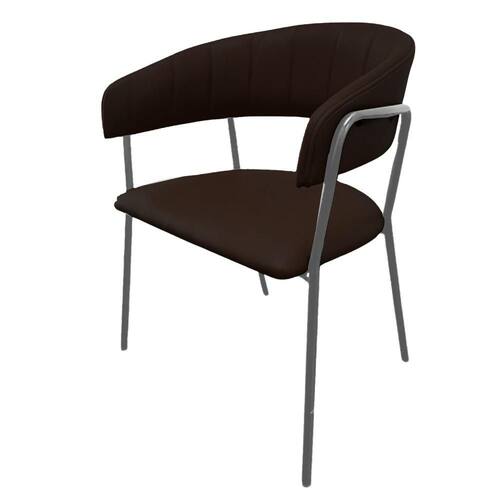 Cadeira com Braços Maraú PSG Móveis Estofada Courrissimo Café com Base Aço Prata