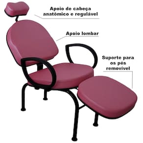 Cadeira Conforty + Mocho Maquiagem Cílios Sobrancelha UnhasPara execução de vários procedimentos de estética e beleza, a For-ty Store lançou a Cadeira Multiuso para Procedimentos modelo Conforty.Com ela, você pode fazer serviços como maquiagem, cílios, sobrancelha, limpeza de pele, unhas, e demais procedimentos, mantendo conforto para cliente e profissional.É uma cadeira robusta, que tem inclinação e apoios corretos para variados serviços.Características:- Cor do estofado: BORDÔ em Tecido Sintético Facto, o tecido Facto é resistente ao uso de Álcool 70 para limpeza e higienização- Encosto de cabeça anatômico, com altura ajustável, que apoia a nuca, dando conforto para o cliente e a firmeza que o profissional precisa- Apoio lombar, para que seu cliente se sinta confortável pelo tempo que necessite para execução do procedimento - Apoio de pernas: além de deixar seu cliente relaxado, tem a altura certa para procedimentos nos pés e unhas dos pés. Pode ser removível- Apoio de braços em P.U., material resistente e com toque macio- Cadeira de apoio para profissional, tipo mocho, para procedimentos onde o profissional pode executar sentado. Possui regulagem de altura e espuma injetadaMedidas da cadeira:Medidas montada: 130cm x 63cm x 85cmSem o apoio de pé: 90cm x 63cm x 85cmMedidas internas no assento: largura 49cm x Profundidade 48 cmMedidas internas do encosto: Largura 47,5cm x Altura 42cmMedida do assento ao chão: Parte próxima ao encosto 42cm x Parte próxima ao apoio de pés 52cmAlturas do apoio de pés: Mínima 39,5 cm e Máxima 49 cmMedidas aproximadas, podendo haver pequenas variaçõesSuporta até 160Kg distribuídos Peso 19kgMedidas do mocho: Altura mínima 53cm e máxima 64cmAssento 38cm diâmetroPentapé 53cm diâmetroSuporta até 120Kg distribuídos Todas as medidas são aproximadas podendo haver pequenas variações.Medida da caixa:68cm x 53cm x 54cmPeso do Kit 23kg
