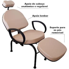 Cadeira Conforty + Mocho Maquiagem Cílios Sobrancelha UnhasPara execução de vários procedimentos de estética e beleza, a For-ty Store lançou a Cadeira Multiuso para Procedimentos modelo Conforty.Com ela, você pode fazer serviços como maquiagem, cílios, sobrancelha, limpeza de pele, unhas, e demais procedimentos, mantendo conforto para cliente e profissional.É uma cadeira robusta, que tem inclinação e apoios corretos para variados serviços.Características:- Cor do estofado: PÉROLA em Tecido Sintético Facto, o tecido Facto é resistente ao uso de Álcool 70 para limpeza e higienização- Encosto de cabeça anatômico, com altura ajustável, que apoia a nuca, dando conforto para o cliente e a firmeza que o profissional precisa- Apoio lombar, para que seu cliente se sinta confortável pelo tempo que necessite para execução do procedimento - Apoio de pernas: além de deixar seu cliente relaxado, tem a altura certa para procedimentos nos pés e unhas dos pés. Pode ser removível- Apoio de braços em P.U., material resistente e com toque macio- Cadeira de apoio para profissional, tipo mocho, para procedimentos onde o profissional pode executar sentado. Possui regulagem de altura e espuma injetadaMedidas da cadeira:Medidas montada: 130cm x 63cm x 85cmSem o apoio de pé: 90cm x 63cm x 85cmMedidas internas no assento: largura 49cm x Profundidade 48 cmMedidas internas do encosto: Largura 47,5cm x Altura 42cmMedida do assento ao chão: Parte próxima ao encosto 42cm x Parte próxima ao apoio de pés 52cmAlturas do apoio de pés: Mínima 39,5 cm e Máxima 49 cmMedidas aproximadas, podendo haver pequenas variaçõesSuporta até 160Kg distribuídos Peso 19kgMedidas do mocho: Altura mínima 53cm e máxima 64cmAssento 38cm diâmetroPentapé 53cm diâmetroSuporta até 120Kg distribuídos Todas as medidas são aproximadas podendo haver pequenas variações.Medida da caixa:68cm x 53cm x 54cmPeso do Kit 23kg