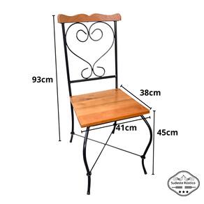 A Cadeira Coração possui um design atraente, encosto abaulado com curva no encosto, dando uma impressão de abraço nas costas. Altamente resistente e durável, é um item em estilo rústico proporcionando elegância e um diferencial ao seu ambiente. A peça é produzida em madeira de demolição jequitibá e ferro com pintura eletrostática(não enferruja) com detalhes acabamento em verniz, proporcionando resistência e durabilidade no produto. Deixe sua casa ainda mais bonita e sofisticada com A Cadeira Coração da Sudeste Rústico.