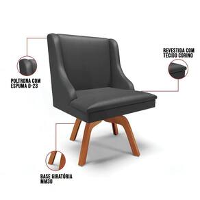 Você precisa investir na cadeira Liz e levar mais personalidade para a sua casa. Super elegante e perfeita para compor qualquer ambiente. Sua estrutura ecologicamente correta de madeira de eucalipto e pinus, oferece durabilidade e qualidade ao móvel, seu estofamento é com espuma de densidade D-23, revestido em tecido em Corino no tom Preto, que oferece muito conforto e resistência ao sentar, com aquela sensação de maciez e bem-estar. Tudo de bom, né?