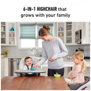 A cadeira alta conversível 6 em 1 ajusta se às necessidades do seu filho em crescimento. O design inovador da cadeira alta infantil permite acomodar 2 crianças simultaneamente. 6 posições de altura e 3 níveis de reclinação para permitir que a cadeira alta se ajuste para uma alimentação fácil. Bandeja removível de uma mão com inserção extraível para lava louças. A inserção removível do encosto do assento ajuda a posicionar seu filho em crescimento na mesa Marca: Não Informado