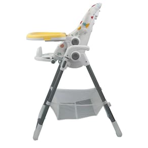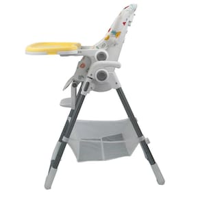 Adequado para mais de 6 meses. Estofado em couro ecológico, fácil de limpar. 6 posições de altura. 5 posições reclináveis. 3 posições no estribo. Bandeja dupla ajustável em 3 posições. Separador de virilha. Rodas traseiras e base dianteira antiderrapante. Dobragem fácil e compacta. Cinto de segurança de 5 pontos