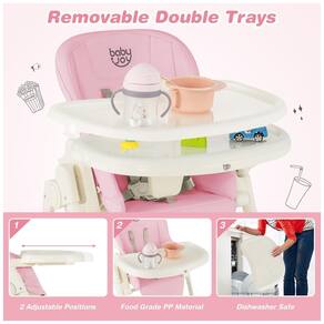 Cadeira alta para bebê multi ajustável nossa cadeira alta para bebê possui 6 alturas ajustáveis, 3 comprimentos e posições de apoio para os pés, encosto de 5 posições e bandejas duplas de 2 posições, atendendo às suas diferentes necessidades e acompanhando o crescimento de seu filho. Com design 4 em 1, esta cadeira alta pode ser usada para seu bebê descansar, brincar, comer e muito mais. Bandejas duplas removíveis as bandejas duplas podem ser lavadas na máquina de lavar louça e podem ser usadas separadamente. A bandeja superior com ranhura é adequada para colocar mamadeiras ou intestinos enquanto a bandeja inferior é ideal para brincar ou ler livros. Além disso, as bandejas duplas podem ser removidas e fixadas nas pernas traseiras quando não estiverem em uso. Projetos de segurança confiáveis Equipados com arnês de segurança de 5 pontos e defletor de segurança anti queda, os pais podem se concentrar no trabalho sem se preocupar com o bebê. As 4 rodas giratórias incluem 2 rodas bloqueáveis para aumentar a segurança. Além disso, a estrutura triangular garante alta estabilidade durante o uso. Materiais premium e estrutura estável Feito de estrutura de liga de alumínio, esta cadeira alta para bebês é resistente e durável para uso prolongado. Além disso, feita de almofada de assento amiga da pele e material PP de qualidade alimentar, esta cadeira de jantar infantil não contém substâncias nocivas e é segura para a saúde do seu bebê. Dobragem com um clique e fácil manutenção a montagem é fácil com instruções detalhadas. Mais importante ainda, a cadeira alta de alimentação é fácil e rápida de dobrar, o que economiza espaço de zenamento valioso e é conveniente de transportar. Além do mais, a almofada do assento é destacável e lavável para limpeza regular Marca: Não Informado