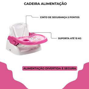 Cadeira de alimentação portátil bandeja ajustável booster até 15 kg disney minnie A cadeira para alimentação tipo booster é versátil e pode ser em cima de uma cadeira regular. Leve e facilmente desmontável, pode ser transportada para qualquer sem dificuldades. Muito segura, está equipada com cinto de segurança de 5 pontos. Idade recomendada: 6 meses + Peso suportado: até 15 kg Cinto de segurança de 5 pontos Bandeja removível e ajustável em 3 posições Adaptável a cadeiras Desmontável, fácil de transportar Material: plástico e aço Registro inmetro: 001 486/2022 de 3 meses direto com o fabricante