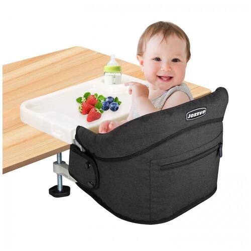Cadeira de Alimentação Portátil com Encaixe em Mesa e Bandeja, Jozzve, Preto