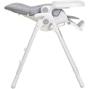 A Cadeira de refeição Snack da Kiddo possui a estrutura em aço e conta com um encosto reclinável em 5 ângulos de ajuste. Além disso a sua altura é ajustável em 7 graduações, tem sua bandeja principal removível e ajustável em 4 graduações. Possui um apoio de pés articulável, o seu assento têm um cinto de segurança de 5 pontos e estofado removível. Fácil de locomover pois possui 2 rodas giratórias.