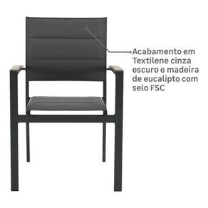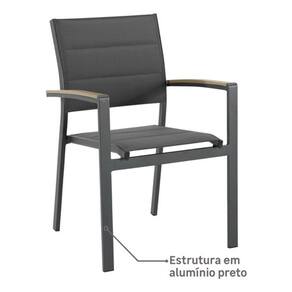 Estrutura em alumínio: Maior resistência e durabilidade. Acabamento em textilene: Resistente à água e proteção contra raios UV, garantindo maior durabilidade. Empilhável: O design permite empilhar as cadeiras, otimizando espaço quando não estão em uso. Descrição: