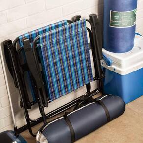 Dobrável e fácil de carregar, a Cadeira Xadrez é prática e confortável, perfeita para usar na sala de estar, na varanda, no parque e onde mais você quiser. Muito resistente, tem estrutura fabricada em aço carbono com acabamento em pintura epóxi à pó preta, que proporciona um visual moderno, e peças plásticas em polipropileno, suportando até 110 Kg.
