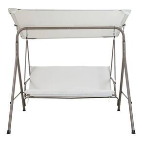 Cadeira de balanco para 3 pessoas, listrada nas cores verde e branco, da marca Just Home Collection. Ideal para momentos de relaxamento e lazer no seu jardim ou varanda. Suporta ate 220 kg, garantindo seguranca e conforto para voce e sua familia.