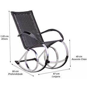 Dimensoes: Altura total: 103 cm Altura assento ao chao: 49 cm Largura: 67 cm Profundidade: 95 cm Suporta ate 180 Kg