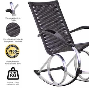 Cadeira De Balanço Em Alumínio Para Jardim E Sala Preto , Ag Caracteristicas: Pecas produzidas em aluminio polido ou pintado (trabalhamos com a pintura eletrostatica) e revestidas em fibra sintetica com protecao UV.