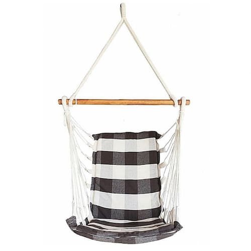 Cor: Marrom com cru xadrez Que tal uma cadeira suspensa que você possa levar e instalar em Praticamente todos os lugares aonde forem como sacadas, Varandas, parques, acampamentos, em casa, quintal, etc., pois, pode ser Pendurada em vigas, lajes, arvores, telhados ou em qualquer lugar que tenha A altura e suporte o peso recomendado.