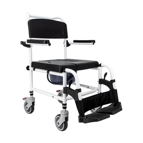 A Cadeira de Banho Desmontável em Alumínio para 110 kg Messina modelo 1408 - Praxis é um produto inovador e versátil, construído em alumínio com pintura branca oferece ao usuário todo o conforto de uma cadeira de rodas com apoios de pés removíveis e apoio de braço rebatível, mas também oferece um assento com orifício central removível e um coletor que também é removível. Veja as características abaixo: