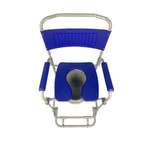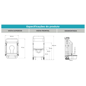 Incluso: Cadeira de Banho D45 Dobrada, Assento Impermeável, Estrutura do Assento, Coletor Rebatível, Apoio de Pé, Rodízio (Rodinhas) e Manual
