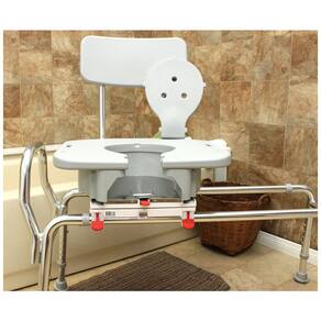 Assento Giratório 360°: O assento pode girar completamente, travando a cada 90°. Essa funcionalidade inovadora permite maior facilidade para transferir-se dentro ou fora da banheira. Proporciona mais independência ao usuário e auxilia cuidadores no banho de entes queridos com maior dignidade e conforto.