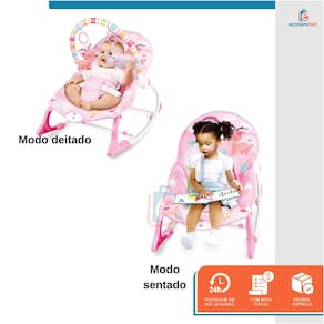 5 Funções para todas as fases: Balanço suave: Acalma e embala o bebê, simulando o colo materno. Vibração relaxante: Ajuda a aliviar cólicas e gases, proporcionando um sono tranquilo. Posição deitada: Ideal para recém-nascidos e para a hora da soneca. Posição sentada: Perfeita para interagir com o bebê e estimular o desenvolvimento. Cadeirinha estática: Para alimentar ou brincar com o bebê.
