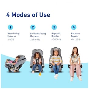 Viva décadas de viagens de carro seguras e tranquilas com a Cadeira de Carro 4 em 1 Graco 4Ever DLX. Este assento de carro intuitivo e inovador faz transições suaves de um assento de carro com arnês voltado para trás de 2 a 18kg, para um assento de carro com arnês voltado para a frente de 12 a 36kg, para um assento de elevação com encosto de 18 a 45kg e, por fim, para um assento de elevação sem encosto de 18 a 54kg. A confiável tecnologia Graco ProtectPlus Engineering oferece proteção robusta em várias situações de colisão. Com o Sistema de Ajuste do Arnês Simply Safe Adjust, você pode ajustar convenientemente o arnês e o apoio de cabeça em questão de segundos para garantir a segurança absoluta de seu filho. Design 4 em 1 que se transforma sem emendas de bebê a criança conforme ela cresce. Safeguard Plus Engineered para proteção ideal em colisões frontais, laterais, traseiras e capotamento. Ajuste sem Esforço do Arnês e apoio de cabeça ajustáveis em um único movimento suave com 10 posições de seleção. Reclinável em 6 posições orientadas ao conforto para manter seu filho confortável durante toda a viagem. Fácil Instalação com fixação LATCH InRight e trava de cinto integrada para uma configuração simples e segura.
