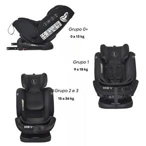 Principais Características: - Idade Recomendada: Do nascimento até 36kgs - Grupos: 0, 1, 2 e 3 - Grupo 0 0 a 13 kg : 1 Posição Voltada para Trás. - Grupo 1 9 a 18kg : Posição para a Frente. - Grupo 2 e 3 15 a 36 kg : Posição para a Frente. - Peso Máximo Suportado: 36kgs - Possui 4 Posições Reclináveis: 1 Posição Voltada para Trás e 3 Posições Voltadas para a Frente. - Possui 6 Níveis de Altura do Encosto de Cabeça. - Base Giratória 360º - Sistema de ancoragem: Cinto de segurança, ISOFIX e Top Tether. - Cinto de Segurança de 5 Pontos. - Aprovado pelo INMETRO