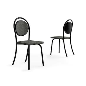 Cadeira Sala de Jantar 1738 Aço Kit 2 Uni Preto/Linho Grafite/Courano Preto - Carraro