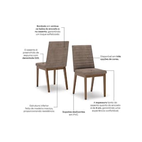 Material de Estrutura - Estrutura em MDF/MDP Estilo do Móvel - Moderno Tipo de Acabamento da Pintura - Fosco Materiais do Estofamento - Estofamento em Espuma Forração do Revestimento - Suede Tipo do Assento - Assento Fixo Densidade da Espuma do Assento - Estofamento do móvel em espuma D23 Altura do Assento Até o Chão (cm) - 50 cm de altura do assento até o chão Tipo de Encosto - Estofado Suporte de Peso - Suporta até 120 kg,