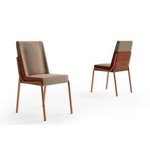 Cadeira Sala de Jantar Hug 1749 Aço Kit 2 Uni Cobre/Linho Areia/Courino Caramelo - Carraro