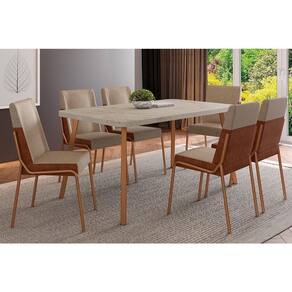 Cadeira De Cozinha Hug 1749 Kit 6 Uni Rose/linho Areia/courano Caramelo - Carraro