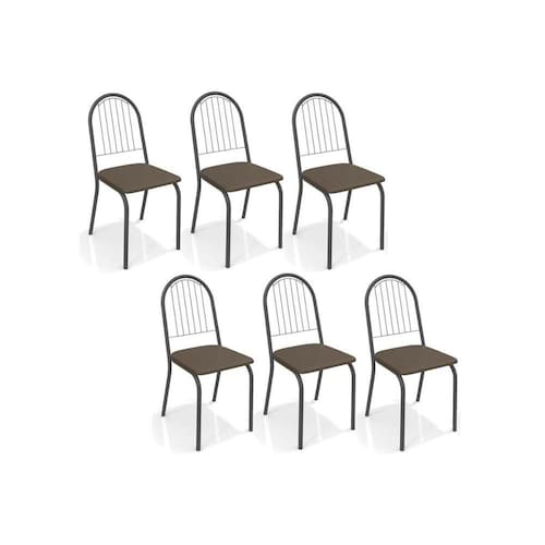 Cadeira de Cozinha Noruega 2C077 Kit 6 Un Preto Fosco/Marrom 21 - Kappesberg