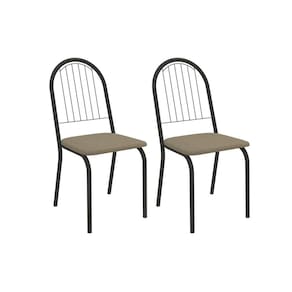 Cadeira Sala de Jantar Noruega 2C077PRF Aço Kit 2 Un Preto/Boucle Bege Fendi - Kappesberg