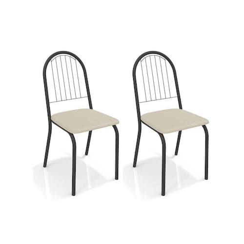 Cadeira de Cozinha Noruega 2C077PRF Kit 2 Un Preto Fosco/Courano Nude - Kappesberg