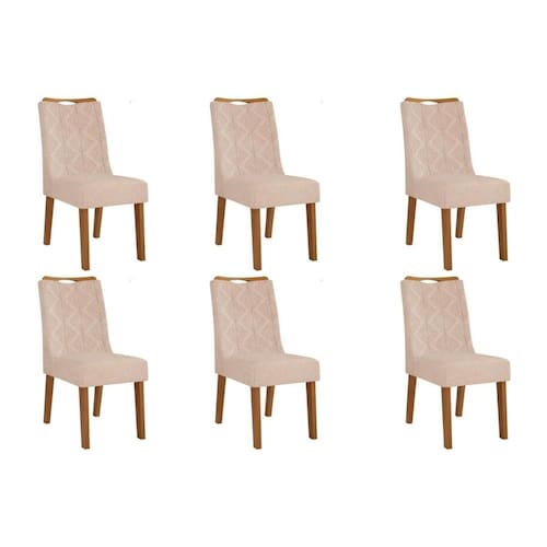 Cadeira de Cozinha Stela Kit 6 Un Ipe/Suede Kraft - DJ Móveis - Blush