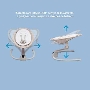 Características: Balanço Automático: Proporciona movimentos suaves que imitam o embalo do colo dos pais, acalmando o bebê e contribuindo para um sono tranquilo. Visor Touchscreen: Com controles intuitivos, oferece 2 direções de balanço, 5 velocidades e 15 melodias relaxantes para ajustar conforme a preferência do bebê. Sensor de Movimento: Detecta a agitação do bebê e ativa automaticamente o balanço, proporcionando conforto e segurança. Assento Reclinável em 2 Posições: Permite ajustar a inclinação para a posição mais confortável, garantindo o bem-estar do bebê. Almofada Redutora para Recém-Nascidos: Garante um encaixe perfeito e aconchegante para os bebês mais novos. Design Leve e Compacto: Com apenas 4kg, é fácil de transportar e se adapta a diversos ambientes, sendo ideal para uso doméstico ou em viagens. Fácil Manutenção: O revestimento com zíper pode ser removido e lavado na máquina, garantindo praticidade na limpeza.