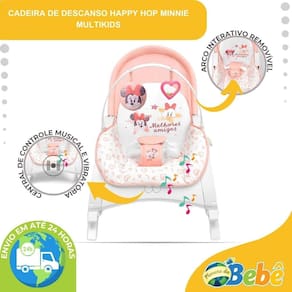 Cadeira de Descanso e Balanço Para Bebê Com Canção de Ninar Minnie - Multikids A Cadeira Happy Hop Minnie da Multikids é a opção ideal para proporcionar ao seu bebê momentos de descanso e diversão. Com um design inovador e funcional, ela é 2 em 1, podendo ser utilizada tanto no modo balanço quanto no modo cadeira de descanso, adaptando-se às necessidades do seu pequeno. Com recursos pensados para o bem-estar do bebê, ela conta com 2 brinquedos interativos que estimulam o desenvolvimento, além de um módulo musical com 10 canções de ninar e 5 sons da natureza. A função de vibração, com duas intensidades, também contribui para o relaxamento do bebê, criando um ambiente mais tranquilo e acolhedor. Seu cinto de segurança de 3 pontos, com protetor entrepernas, garante que o bebê fique sempre bem acomodado e protegido. Já o encosto acolchoado oferece 2 posições de recline, proporcionando ainda mais conforto para o pequeno. Sua estrutura leve e resistente torna o uso mais prático, enquanto os pés retráteis permitem alternar facilmente entre as funções de balanço e descanso. Outro destaque é o seu arco interativo removível e a sua estrutura dobrável, que facilita seu armazenamento e seu transporte, tornando-a perfeita para diferentes ambientes e levando ainda mais diversão para o pequeno em qualquer lugar. Aprovada pelo Inmetro, a Cadeira Happy Hop é ideal para acompanhar o crescimento do seu bebê com conforto e segurança. Principais Características: - Idade Recomendada do Nascimento até 3 Anos - Peso Máximo Suportado: 20kgs - Modelo: Happy Hop Minnie - Possui 10 Canções de Ninar e 5 Sons da Natureza - Central de Controle com 2 Ajustes de Volume - Função Vibração com 2 Intensidades - Estrutura com Fechamento Dobrável Compacto - Encosto com 2 Posições de Recline - Pés Retráteis para Uso na Função Balanço ou Descanso - Cinto de Segurança de 3 Pontos - Possui Protetor Entrepernas - Encosto Confortável Acolchoado - Estrutura Leve e Resistente - Possui 2 Brinquedinhos Interativos - Arco Interativo Removível - Necessário 4 Pilhas AA Não Inclusas - Aprovado pelo Inmetro Especificações Técnicas: - Conteúdo da Embalagem: 1 Cadeira de Descanso Happy Hop Minnie - Multikids - Dimensões do Produto Aberto AxLxP : 45,5 x 49,0 x 61,0cm - Dimensões do Produto Fechado AxLxP : 62,0 x 49,0 x 61,0cm - Composição/Material: Polipropileno, Poliéster e Ferro - Alimentação: 4 Pilhas AA Não Inclusas - Peso: 3,000kgs - : 90 dias Contra Defeitos de Fabricação Pelo Fabricante - Certificação: Inmetro 001678/2022 - Código do Fabricante: BB482 - EAN: 7908842809276 - Marca: Multikids Imagens Meramente Ilustrativas. As cores e estampas podem variar de acordo com o lote do fabricante.