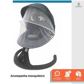 DETALHES TÉCNICOS Cinto 5 pontos Encosto ajustável Posições de recline: 3 Controle remoto: Sim Painel Touch Screen: Sim Timer ajustável: 5 a 40 minutos Controle de velocidade: Sim Volume ajustável: Sim Troca de música: Sim Capota removível: Sim Mosquiteiro: Sim Suporte de alimentação: Sim Carregador: 110v/220v Funcionamento: Conectado a tomada ou a pilha Tipo de pilha: 4 Pilhas AAA (não incluso)