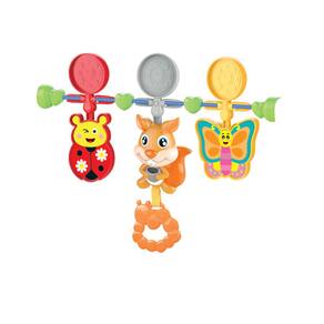 • Alça removível com 3 Brinquedos Divertidos - Sendo um dos Brinquedos Musical por corda com 3 Baterias LR44 (inclusas).