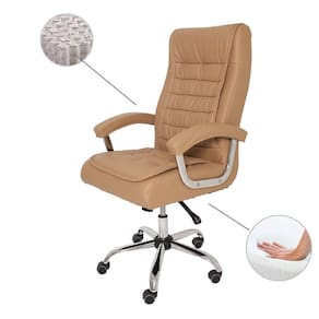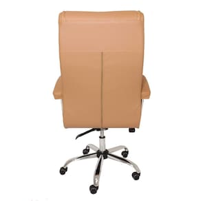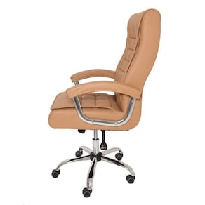 Poltrona Cadeira Para Escritório Com Braço Base Cromada Rodinhas de nylon anti risco resistente confortável e barata tipo poltrona executiva giratória com ajuste de altura Para 150kg Big Monique Molas Enscadas Pillow Top Caramelo