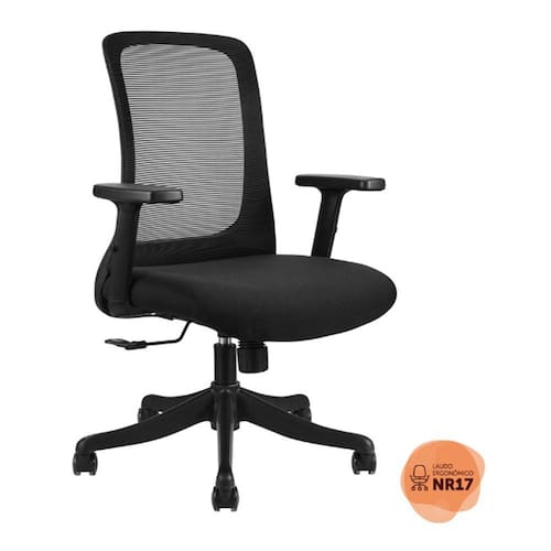 Nossa Cadeira de Escritório Boston - Preto possui um design inovador com beleza e modernidade, podendo ser utilizada no seu escritório ou para compor sua sala. Sendo giratória com ajuste de altura e sistema relax, assento em tela mesh, braços ajustáveis e base e rodízio é em nylon, ela promete muito mais conforto para o seu dia a dia.