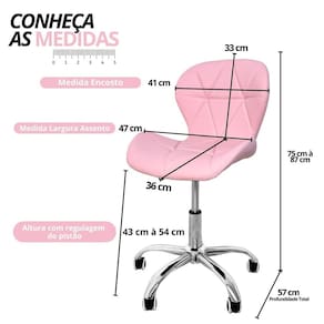 Seu design ergonômico, com assento e encosto estofados em espuma de alta densidade, se adapta ao corpo, proporcionando postura correta e prevenindo dores nas costas. Com base giratória e rodinhas, a Cadeira Slim Vegas oferece movimentação livre e fácil acesso a todo o ambiente. Produto Montado: Sim Altura do assento até o chão: 43.0000 Ambiente Principal: Escritório Ângulo Máximo de Inclinação da Cadeira: 90 ° Cadeira Estofada: Sim codigo_ean: 7900288193308 Complexidade da Montagem: Baixa: pode ser montado por uma pessoa sozinha Cor: Rosa Quartzo Cor da Base: Cromado Cor do Produto: Rosa Quartzo Empilhável: Não Enchimento do Assento: Espuma Enchimento do Encosto: Espuma Encosto Reclinável: Não Giratória: Sim Informações Complementares: Base de metal cromado, com pistão e rodízios Itens Inclusos: 1 Cadeira e Kit Ferragem KIT: Não Linha ou Coleção: Slim Vegas Manual de Montagem e Instalação: https://product-hub-prd.madeiramadeira.com.br/447981554/documents/63f2468e-d49b-47cf-9df6-9dd948acec762925386644717471671880955.pdf Marca: DKADI DECOR Material da Base: Madeira Material do Assento: Madeira Maciça Modelo da Cadeira de Escritório: Estofada Necessita Montagem: Sim Origem do Produto: Importado Peso: 6 kg Possui Almofada de Apoio para a Lombar: Não Possui Almofada de Apoio para o Pescoço: Não Possui Apoio para Braços: Não Possui Apoio para Cabeça: Não Possui Apoio Para os Pés: Não Possui Certificação ABNT: Não Possui LED: Não Possui Massagem: Não Possui Regulagem de Altura de Assento: Sim Possui Regulagem de Altura do Encosto: Não Possui Rodízio: Sim Quantidade do Produto: 1 Recomendações de Uso, Manutenção e Limpeza: Utilizar pano úmido, evitar uso de produtos abrasivos Revestimento do Assento: Couro Sintético Revestimento do Encosto: Couro PU Rodízio com Trava: Não Rodízios Antirrisco na Base: Sim Sistema de Montagem: Parafusos Suporta Até (kg): 120 kg Tipo de Cadeira de Escritório: Cadeira Secretária Tipo de Mecanismo da Cadeira: Simples Marca: Não Informado