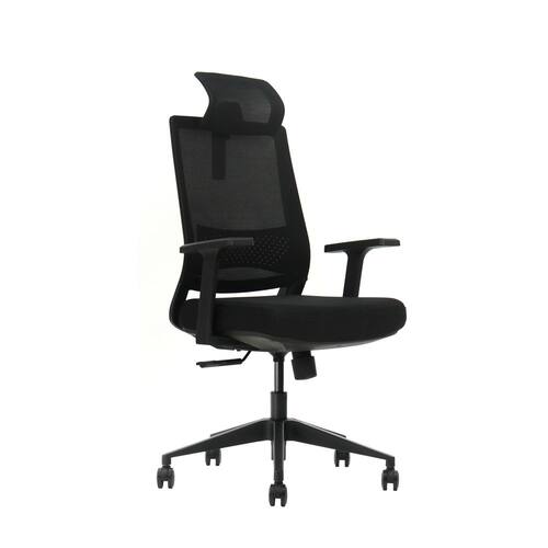 Cadeira de escritório com encosto de cabeça 2D ajustável; Apoio lombar com altura ajustável; Mecanismo borboleta com função de inclinação e trava Assento em tecido com espuma moldada por injeção; Apoio de braço fixo em PP; Pistão a gás classe 4 aprovado pela BIFMA; Base em nylon 340 mm, com rodízios de nylon de 60 mm. Tecido: mesh preto Marca: Não Informado
