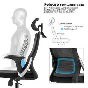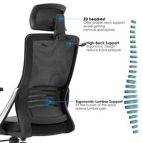 Cadeira de escritório com encosto de cabeça 2D; Encosto em tela mais estrutura em PP preto; Teste de residência das costas de 105Kg; Apoio lombar 2D; Apoio de braço ajustável em altura com almofada de PU; Assento em tecido com espuma de alta densidade; Pistão a gás classe 3 aprovado pela BIFMA; Mecanismo borboleta com função de inclinação e trava; Base em PP de 310 mm e rodízios de 50 mm aprovados pela BIFMA; Marca: Não Informado