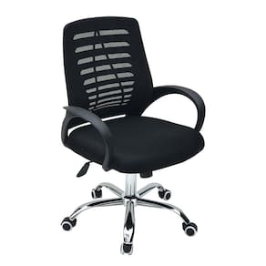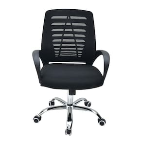 Com 60 cm de largura e 100 cm de altura, a Cadeira Diretor é giratória, possui encosto e assento em tela, tem regulagem de altura a gás e braços de apoio fixo. Além disso, tem acabamento em plástico e aço cromado.