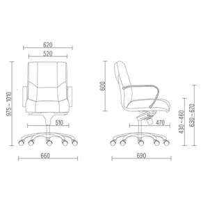 Alavanca direita regula a altura do assento, já a alavanca esquerda libera o movimento de inclinação de assento e encosto.