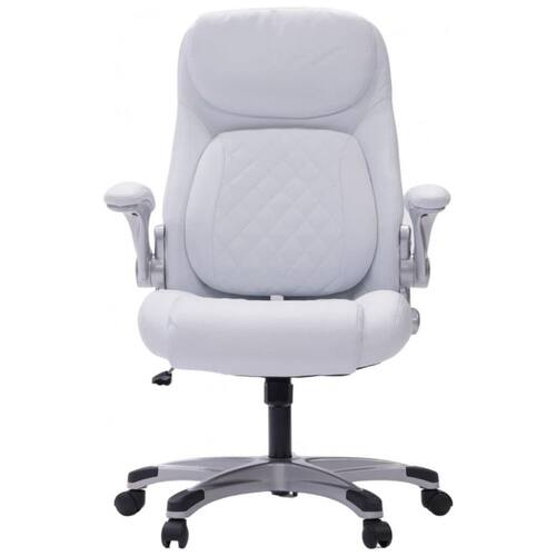 FORTE NA APARÊNCIA: Esta cadeira de couro PU tem uma distância entre eixos de nylon resistente, reforçada com nervuras e reforços. O suave elevador a gás Classe 4 oferece um alcance do assento ao chão de 47,5 a 56,89 centímetros. Você tem espaço máximo no quadril de 49,02 centímetros e capacidade máxima de 108,86 quilogramas. Escolha entre preto, cinza ou branco para fortalecer sua decoração.