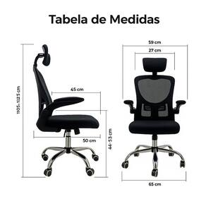 Cadeira de escritório presidente mesh elegance preta Você já parou para pensar no impacto que uma cadeira de qualidade pode ter no seu desempenho diário Seja no trabalho, nos estudos ou nos momentos de lazer, a escolha certa faz toda a diferença. É por isso que apresentamos a cadeira para escritório presidente mesh elegance preta, a companheira ideal para as longas jornadas de produtividade e conforto. Imagine-se aproveitando horas de trabalho sem desconfortos, estudos sem interrupções e até mesmo momentos de lazer sem preocupações com postura. Com um design elegante e moderno, essa cadeira se integra perfeitamente a qualquer ambiente, proporcionando um toque de sofisticação onde quer que esteja. O diferencial A combinação perfeita entre ergonomia e estilo. Nossas cadeiras foram projetadas para garantir não apenas o máximo conforto, mas também uma estética que se destaca. Assuma o controle do seu espaço de trabalho ou estudo com a cadeira para escritório presidente mesh elegance preta, e descubra como o equilíbrio perfeito entre conforto e produtividade. Diferencias da cadeira 1 apoio de cabeça com ajuste 3d Apoio de cabeça ajustável em sete níveis de altura e angulação, garantindo o máximo conforto. Escolha a posição adequada e alivie a pressão cervical. Além disso, a cadeira pode ser utilizada sem o apoio de cabeça. 2 apoio de braços Os braços da cadeira são retráteis, facilitando o encaixe nas mesas e proporcionando versatilidade. Além disso, eles são revestidos com tecido em poliéster, o mesmo utilizado no assento, garantindo conforto durante a jornada de trabalho. 3 sistema relax A cadeira possui um sistema relax para momentos necessários de pausa durante a jornada de trabalho, proporcionando descanso. Nosso sistema permite inclinar até 135, garantindo conforto em diferentes posições. 4 tecnologia mesh A cadeira de escritório presidente mesh elegance emprega a avançada tecnologia mesh, um material que proporciona uma superfície respirável e confortável que evita o acúmulo de calor e umidade para quem enfrenta várias horas de rotina de trabalho. 5 design ergonômico A cadeira de escritório presidente mesh elegance possui um design ergonômico que oferece conforto e suporte durante horas de trabalho, com ajustes personalizados para promover uma postura adequada e reduzir o cansaço. 6 bases e rodas A base e as rodas da cadeira de escritório presidente mesh elegance garantem estabilidade e mobilidade suaves, tornando seu trabalho mais confortável e eficiente. 7 montagem Medidas principais - base até topo do encosto de pescoço: 110 cm até 122,5 cm; - base até assento: 44 cm até 53 cm; - assento até topo do encosto de pescoço: 69 cm até 73 cm. - largura encosto de costas: 49 cm; - largura entre os braços externos : 59 cm; - largura total entre as rodas: 65 cm. Dúvidas frequentes 1 como funciona a política de troca e devolução do produto Seguindo as diretrizes do código de defesa do consumidor, o cliente pode solicitar a devolução do seu produto em até 7 dias após a compra, ou solicitar a troca em caso de defeitos ou outros motivos. 2 o produto possui Valorizamos a satisfação e a confiança dos nossos clientes. Todos os nossos produtos possuem de 12 meses contra defeitos de fabricação. Caso ocorra algum problema com seu produto dentro do período de , nossa equipe estará pronta para solucioná-lo rapidamente e com eficiência. Estamos sempre disponíveis para ajudá-lo e garantir a sua satisfação com a sua compra. 3 qual o peso máximo suportado pela cadeira Nossas cadeiras suportam até 130 kg.