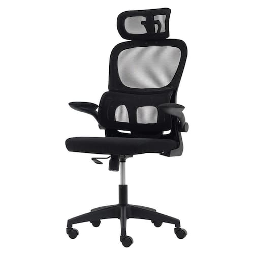 Cadeira De Escritório Ergonômica Preta Apoio Lombar E Cabeça - Preto